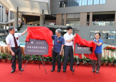 5月18日下午,我校在南校区二期基础实验楼举行机电与控制工程学院、信息工程学院南校区新大楼启用揭牌仪式,这标志着我校南校区第二栋新大楼正式投入使用。校领导章必功、邢苗、陶士平、阮双琛、李永华和学校相关部门领导、学院领导及师生代表出席仪式。