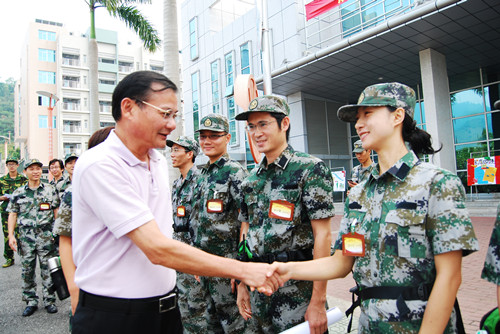 9月24日,乐竞平台2012级新生军训阅兵仪式分别在广州一团、葵涌二团和梅林三团举行。校领导江潭瑜、李清泉、陶士平、陶一桃、阮双琛、邢锋、李凤亮率机关各部门、各学院负责人深入各军营看望慰问学生,检阅了军训成果。仪式结束后,6100多名2012级本科新生结束了进行为期10天的军营学习生活,胜利返校。