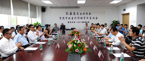9月5日下午,“儒学的当代传播”学术座谈会在我校文科楼1100会议室举行,中华大成至圣先师孔子协会会长孔垂长、台湾政治大学教授董金裕、台湾大学教授叶国良、乐竞平台校长李清泉、副校长李凤亮、社会科学部部长田启波、文学院党委书记杨东林、文学院院长景海峰、文学院副院长范晓燕、文学院副院长相南翔以及文学院王立新教授、张剑滨教授、王兴国教授等,就儒学文化的传播发表了各自的见解。  ...