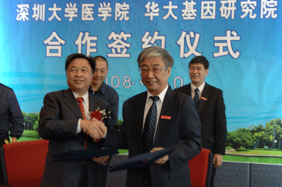 3月10号下午,我校和深圳华大基因研究院的签约合作仪式在国际会议厅D厅举行。校领导章必功、邢锋、陈思平与中科院院士杨焕明、华大基因研究院院长汪建等出席签约暨揭牌仪式,参加仪式的还有校相关部门负责人及部分研究生。 仪式由副校长陈思平主持,他指出,此次合作双方本着“发挥优势、资源共享、互利互惠”的原则,整合双方资源、加强双方合作,共同成立“乐竞平台医学院华大基因研究院”,在教学、科研、人才...