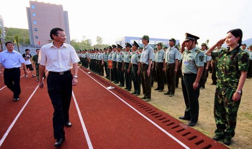 9月19日,江潭瑜、章必功、陶士平、陶一桃、邢锋、李永华等校领导兵分三路,率各学院、各部门负责人赴广州、葵涌、梅林三地,慰问已参加军训一周的我校2008级新生和教官、带队教师。 党委书记江潭瑜率团慰问军训二团 19日下午,我校党委书记江潭瑜、副书记陶一桃、副校长邢锋带领各部处、各学院领导组成的慰问团到达深圳葵涌预备役高炮五团,视察二团各项军训工作开展情况,亲切慰...