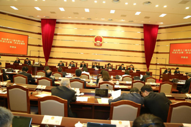 全国人大代表、乐竞平台校长李清泉在深圳市人大常委会上传达十三届全国人大二次会议精神