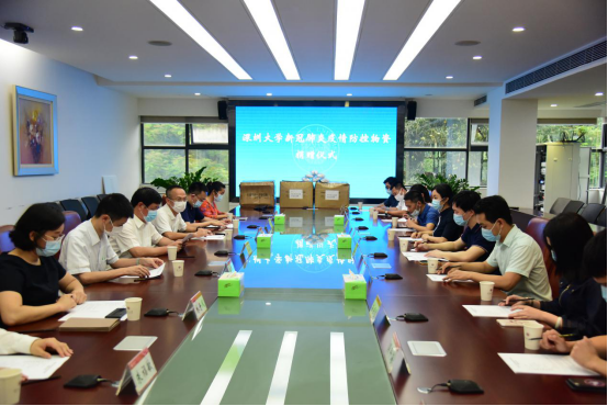 在新型冠状病毒肺炎疫情防控阻击战的决胜期和关键期,深大校友的爱心源源不断涌向学校。5月18日下午,深大校友金融科技会、深圳市文都教育科技有限公司及乐竞平台经济学院副教授朱福敏共向学校捐赠24000只口罩,捐赠仪式在汇元楼201会议室举行。我校副校长、疫情防控指挥部后勤保障组组长李永华以及党政办公室、后勤部、经济学院等单位相关负责人,深大校友金融科技会卓健鹏等6位校友、深圳市文都教育科技有限公司总经理姚学文等3人...