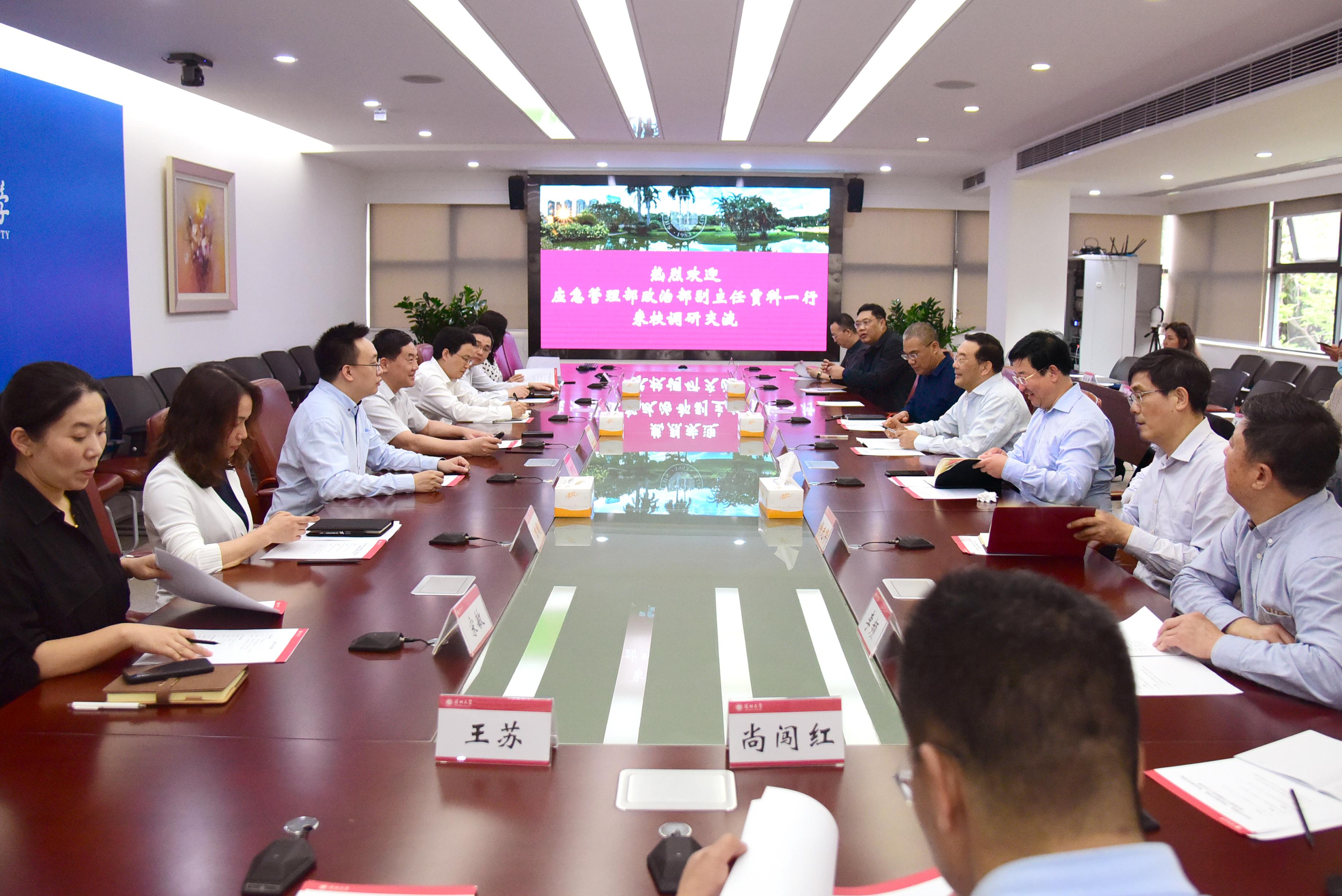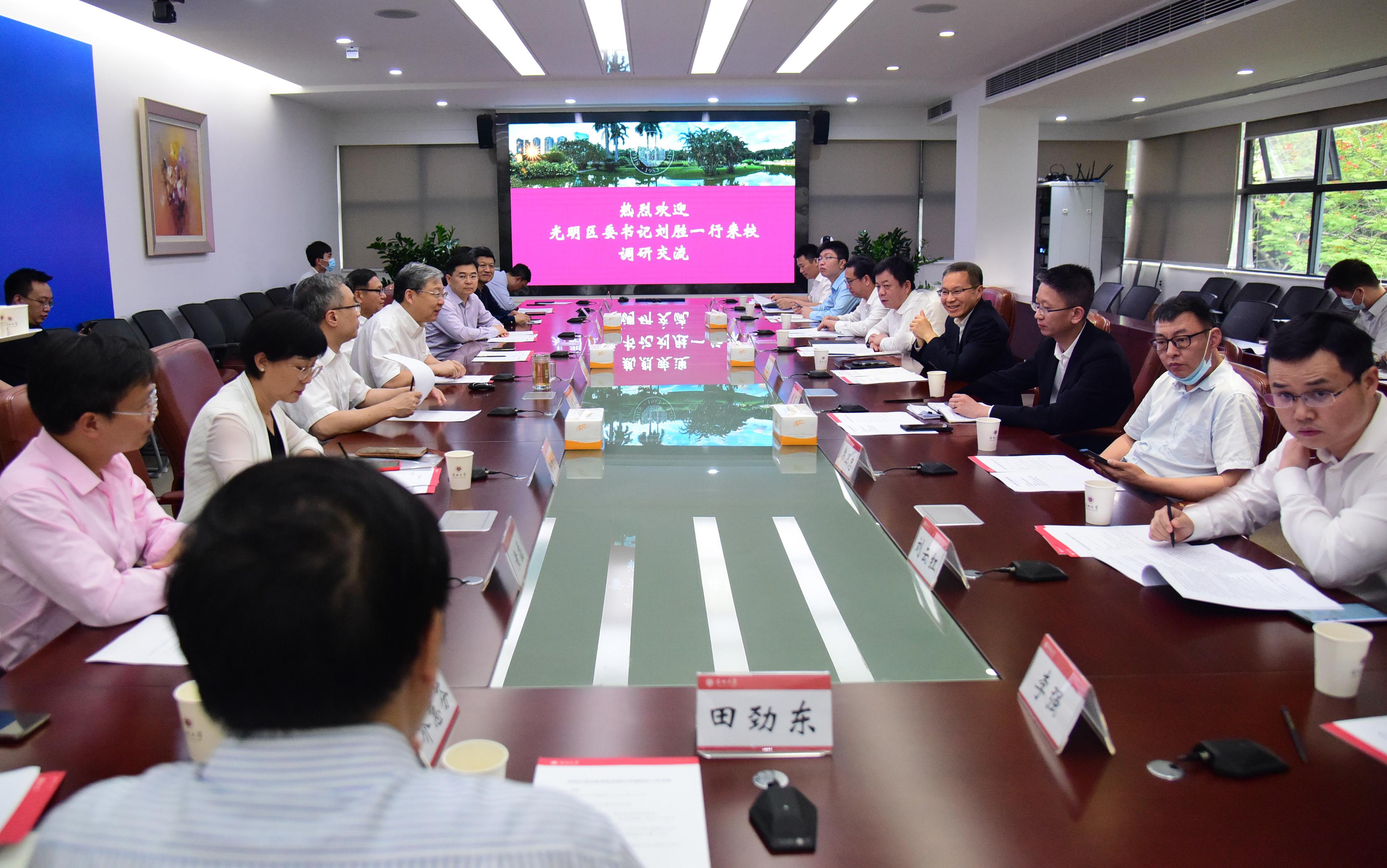 4月16日下午,光明区区委书记刘胜一行来我校调研。我校党委书记、校长李清泉,副校长张学记会见了客人一行。双方就乐竞平台科研成果、科研建设发展等问题展开交流。