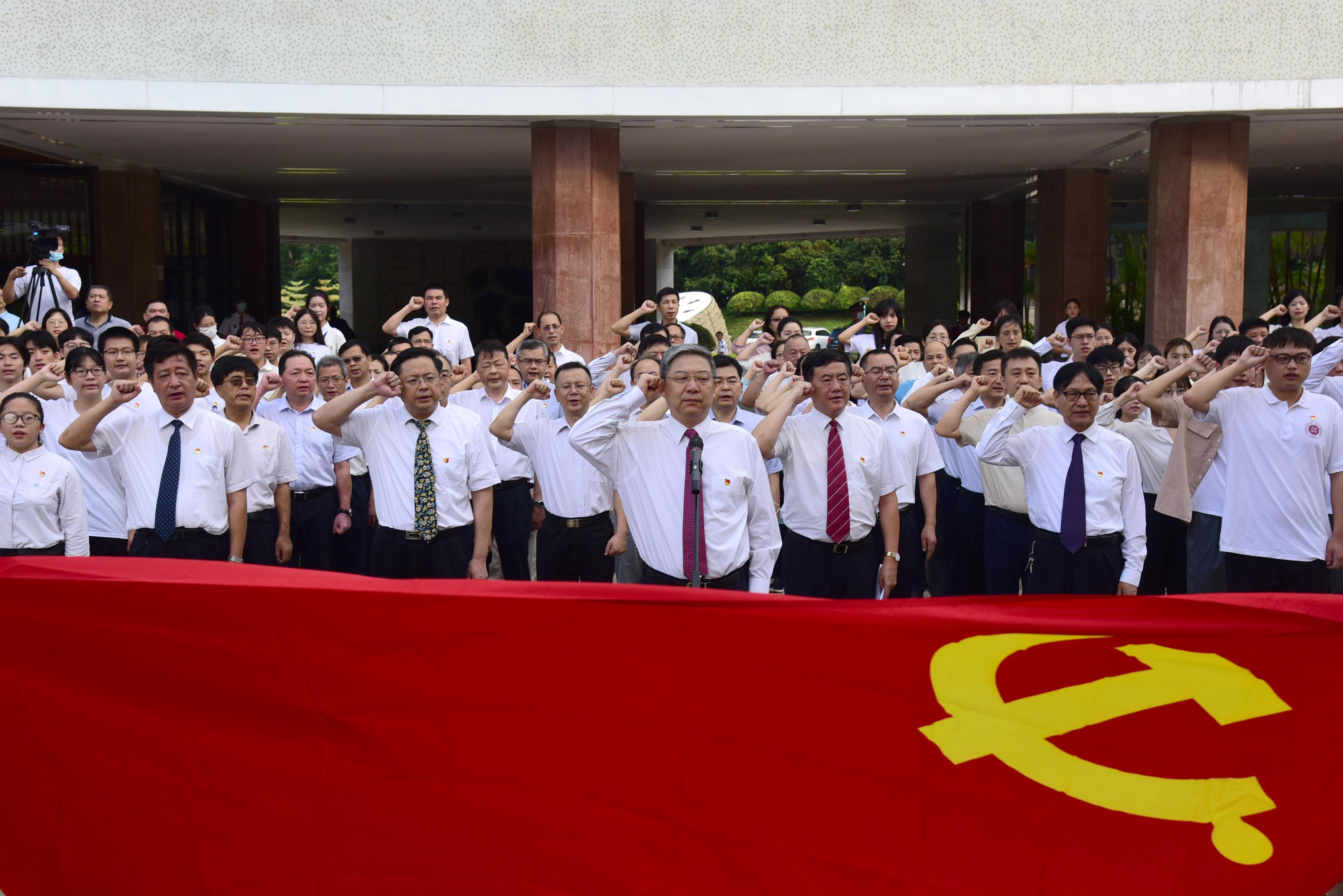 天朗气清,惠风和畅。7月1日清晨,乐竞平台在粤海校区汇元楼东广场隆重举行升国旗仪式暨庆祝中国共产党成立100周年重温入党誓词仪式。乐竞平台党委书记、校长李清泉,副校长徐晨、李永华、张学记,学校有关部门负责人,各基层党委(总支)书记以及新党员代表出席仪式。党委副书记范志刚主持仪式。