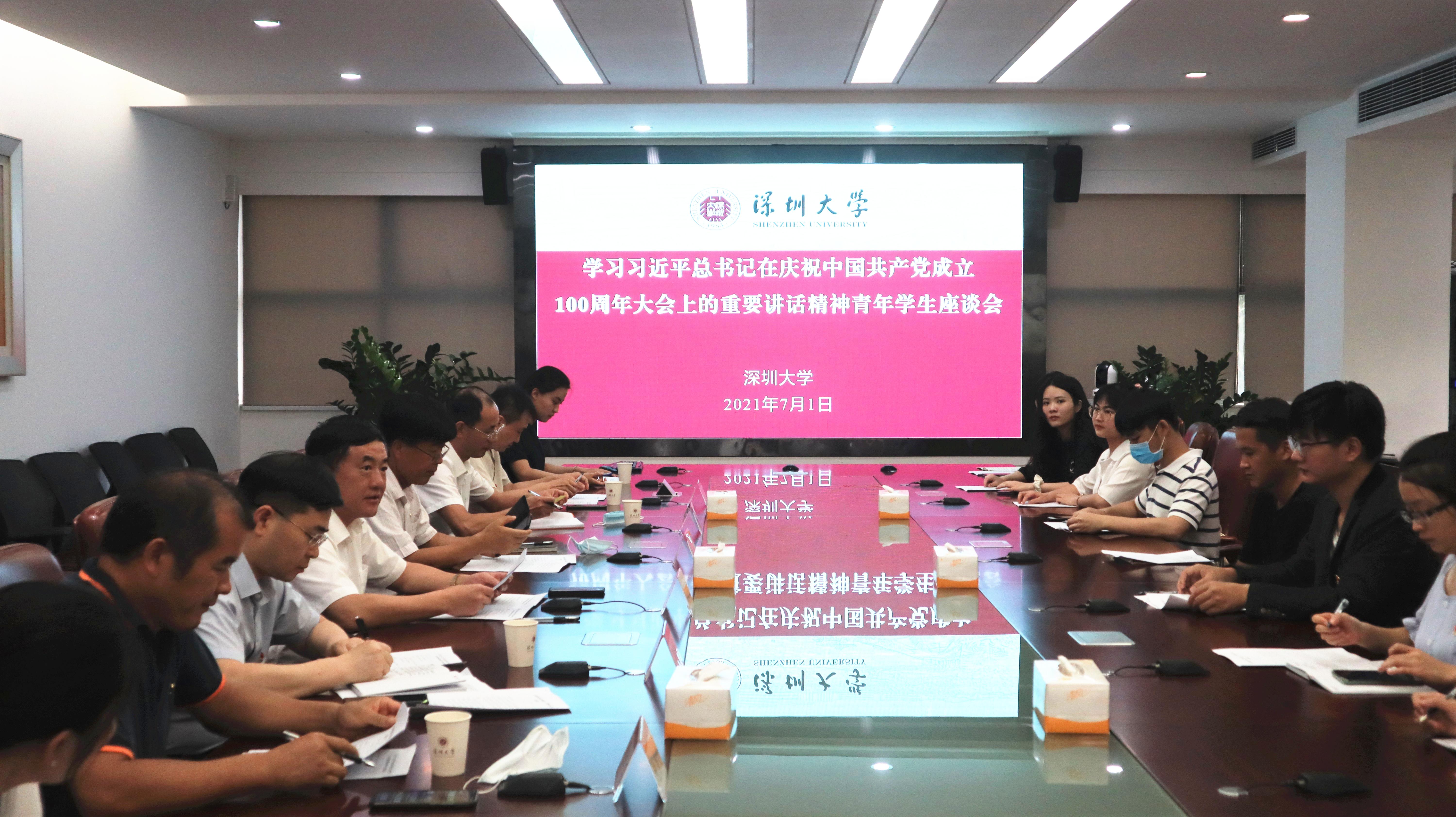 7月1日下午,乐竞平台在汇元楼201会议室举办学习习近平总书记在庆祝中国共产党成立100周年大会上的重要讲话精神青年学生座谈会,21名学生代表畅谈学习体会。学校党委副书记范志刚主持会议,深圳市委教育工委党史学习教育第二巡回指导组鲍传文,学校党委宣传部、党委研工部、党委学工部、校团委等部门负责人参加座谈会。