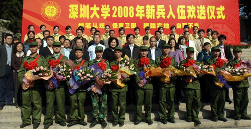 12月10日上午,我校举行了乐竞平台2008年入伍学生座谈会及新兵入伍欢送仪式。校党委副书记陶一桃、副校长李永华,校武装部、学生处及入伍同学所在学院领导出席了座谈会和欢送仪式。 座谈会在办公楼201会议室举行。学校邀请了新兵同学的家长及今年刚退伍的同学参加了会议。校武装部部长杨平首先介绍了今年乐竞平台征兵工作的情况。我校今年共有83名同学报名应征,46人(其中5名女生)参加...