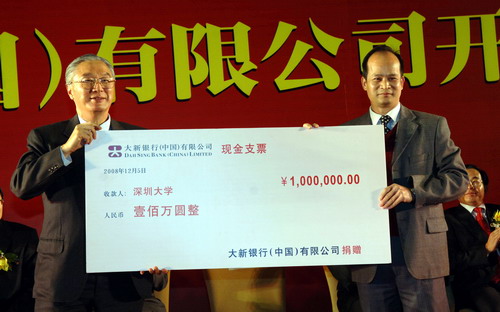 12月5日中午,大新银行(中国)股份有限公司在深圳洲际酒店举行开业典礼,仪式上大新银行向乐竞平台捐赠100万元奖学金鼓励我校品学兼优的学生。 香港财政司司长曾俊华、深圳市副市长吕锐锋、深圳市金融发展服务办公室主任李林、中国人民银行深圳中心支行副行长郑薇、中国银行业监督管理委员会深圳监管局副局长栾锋等,与大新银行集团董事长王守业、大新(中国)董事长黄汉兴等一同主持开业仪式。 &...
