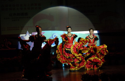 12月22日晚,国际会议厅灯火辉煌,我校校友和留学生迎新年联欢晚会在这里精彩上演。校领导章必功、陶一桃、阮双琛、李永华、李凤亮,各学院校友代表,留学生部师生共四百多人出席晚会。晚会的主题是:一米阳光,百年风光。为的是凸显全体校友无上的聚能,缔造特区大学永恒的光荣。本场晚会,收到21个学院的54个班级为校友大厦捐款,共计132.6522万元。至此,深大25周年校庆期间,共有12000多名校友返校参加校庆活动,捐款近3000万元。