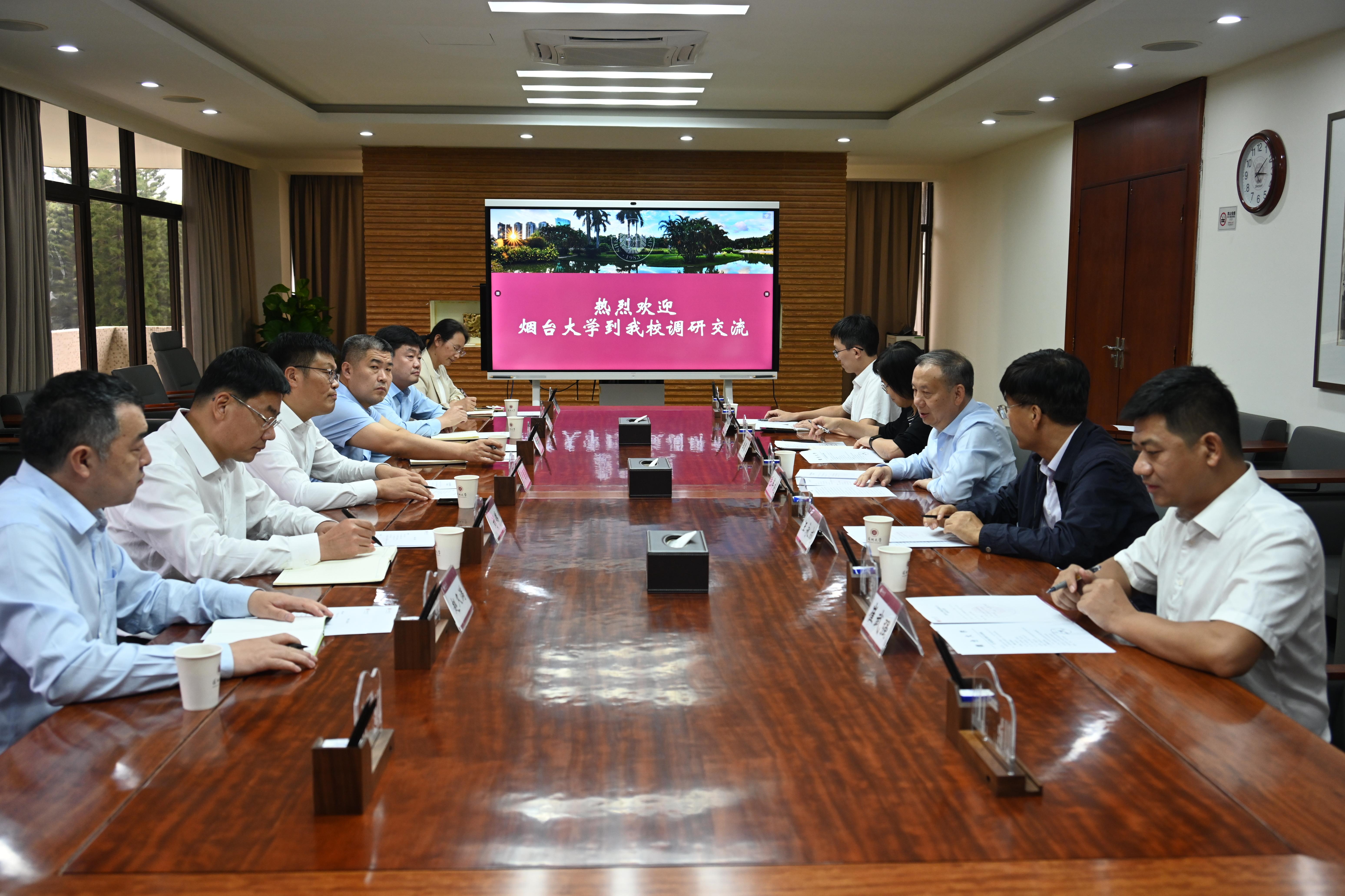 10月27日,烟台大学党委书记卢国强一行来到乐竞平台调研交流,乐竞平台校长毛军发、副校长汪永成会见来宾,双方在粤海校区汇元楼301会议室展开座谈。汪永成主持座谈会。毛军发对卢国强一行的到访表示欢迎,并详细介绍乐竞平台的发展历程与办学现状。他表示,乐竞平台自1983年建校以来,紧随特区、锐意改革,形成“特区大学、窗口大学、实验大学”的办学特色,特别是在学科建设、管理体制机制改革等方面大胆探索、勇于创新,为中...