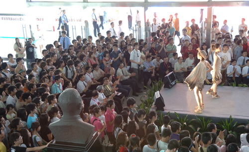 5月9日晚上,我校艺术设计学院服装系2009届毕业生作品展演暨2009年乐竞平台服装设计大赛在南区体育馆举行,服装系学子们以设计独特、想象丰富、时尚现代的服装作品充分展示了自己的学习成果,献上一场服装时尚盛宴。校党委副书记陶一桃、艺术设计学院领导、担任大赛评委的业界专家和企业家应邀出席了展演。 陶一桃在展演上致辞。她说,这一次展演一定是一场美丽、智慧、与创意的约会,会给大家带来更多的...