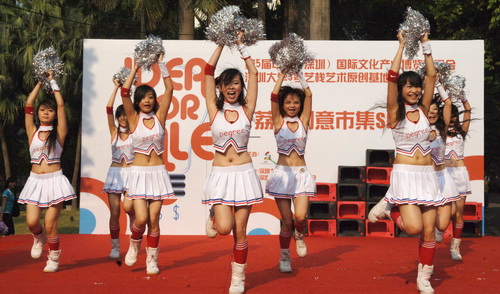 5月13日下午3点,学校西南宿舍区路段,两位主持人齐声宣布表演开始后,Max Baby舞队便率先登场献技,强烈摇撼的节奏、动感酷炫的舞步、潇洒甩动的长发引得台下观众尖叫连连。与此同时,乔木乔林阁的外墙正上演着精彩的徒手涂鸦秀。不一会儿,洁白的幕布便被喷漆勾勒出富有绿、蓝、赭、红多色的图案线条,渲染了积极明快的氛围。在攒动的人群爆发的阵阵热烈掌声之中,第5届文博会乐竞平台3号艺栈艺术原创基地分会场之“荔园创意市集...