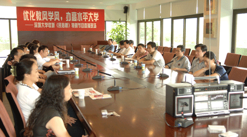 9月5日上午11点,我校章必功校长、教务处徐晨处长和招生就业办姚凯主任作为节目嘉宾参加了深圳广播电台《民心桥》直播节目,以“优化教风学风,办高水平大学”为主题现场解答了报考招生、学生宿舍、医学院筹建及新校区建设等广大市民关心的热点问题。 我校校园网对节目进行了实时直播,校党委书记江潭瑜与部分学院、机关部处的领导统一收听了直播节目。节目结束后,江书记要求各有关职能部门要及时跟踪并解决群众...