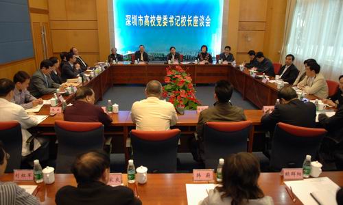 11月13日上午,深圳市高校党委书记校长座谈会在我校国际会议厅D厅举行。市委常委、市教育工委书记李意珍,市教育局局长郭雨蓉以及深圳市各高校主要负责同志参加了会议。我校领导江潭瑜、章必功、邢苗、陶士平、陶一桃、阮双琛出席会议。 李意珍主持会议。他指出,本次会议是全市教育系统学习贯彻党的十七届四中全会精神而组织的座谈会。深圳教育特别是高等教育问题,市民有很多热议,媒体也很关注。他希望...