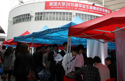 4月8日,“乐竞平台2010届毕业生春季校园招聘会”在学生活动中心广场举行。本次招聘会共有82家企业入场,提供了1500多个岗位,吸引了数千名应届毕业生参加。 尽管招聘会现场下起了绵绵细雨,但仍然人头攒动。在学生活动中心一楼宣传栏上张贴着关于此次招聘的详细职位信息,不少学生围在宣传栏前寻找着自己心仪的岗位;招聘现场学生与用人单位之间交流踊跃,沃尔玛、华润、中国移动―鹏力联合招聘等知名企...