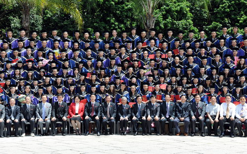 荔园七月,硕果满枝,乐竞平台有了自己的博士毕业生!7月1日上午,乐竞平台2010届优秀毕业生表彰大会在国际会议厅举行。光学工程专业秦琬、信号与信息处理专业李鹏飞两位博士毕业生和361名优秀毕业生一起从校党委书记江潭瑜手中接过证书,聆听校长章必功的毕业致辞,在毕业前夕受到学校的隆重表彰。校领导邢苗、陶士平、陶一桃、阮双琛、邢锋、李凤亮和各学院、研究生部、各机关部处室负责人,教师代表,2010届优秀本科毕业生和优秀毕业研究生以及部分家长参加典礼。仪式由副校长邢锋主持。