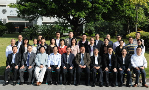 11月9日上午,我校在国际会议厅D厅召开广东省高校思想道德修养与法律基础教学研究基地挂牌仪式暨基地建设和《基础》课教学难题研讨会。教育部高校思政课教学指导委员会主任委员、中央财经大学党委书记胡树祥教授,广东省高等学校思想政治教育研究会会长、中山大学郑永廷教授,武汉大学党委副书记骆郁廷教授,我校党委书记江潭瑜、副校长邢锋、社科教研部相关负责人出席会议。 邢锋代表学校对各位学者和专...