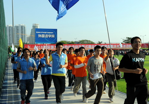 11月12日,我校在南区足球场举行了2010年综合运动会开幕仪式暨全国百所高校阳光长跑活动启动仪式。章必功校长、邢锋副校长、李永华副校长以及学校各相关部处、各学院负责人、各学院学生长跑队员参加了开幕式。 由于我校大部分运动场馆正在进行大运会场馆建设,今年校运会,我校将减少竞技体育项目,增加群众体育项目。从12日至23日期间,不占用上课时间,利用零星时间,在学校合适场地进行相关比赛。预计...