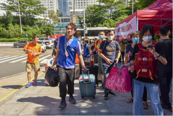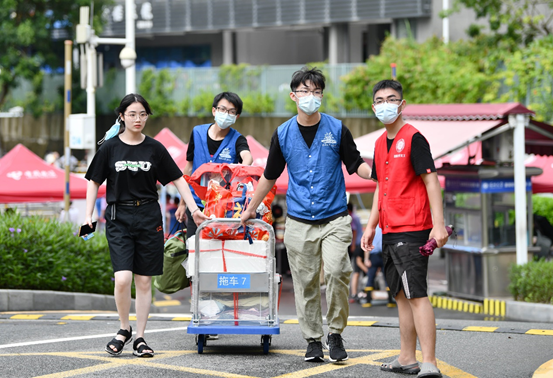 由于疫情防控原因,学校实行相对封闭管理,2020级新生报到时,陪同送行的亲友及车辆均不能进入校园,这一次,萌新们自己独立完成了报到全过程。而贴心的荔园也早已为新生们准备好了细致周到的服务,温暖贴心一样都不少。据介绍,今年学校共有1000多名学生参与迎新志愿服务工作,全天候为新生做好接机接站、咨询指引、报到注册、搬运行李等志愿服务。