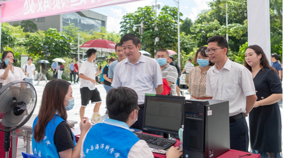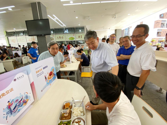 “你来自哪里啊?”“欢迎你来深大!”“家长们对于不能入校都能理解吧?”“报到的新生中有没有发热的同学?”……9月16日新生报到第一天,一大早,学校党委书记刘洪一、校长李清泉,副校长王晖、李永华等分别前往粤海、沧海、丽湖校区,了解新生报到注册、入住、就餐等有关情况。在南门报到区、在元平体育馆、在荔天餐厅,刘洪一、李清泉与刚刚步入校园的新“深大人”热情的交流互动,祝贺他们加入荔园,鼓励他们尽快适应大学生活,开启人生新征程;在新生宿舍,王晖了解新生住宿情况,询问他们入住感受,听取他们的意见。在丽湖校区,李永华慰问了迎新接待工作人员和志愿者,感谢他们的辛勤付出。