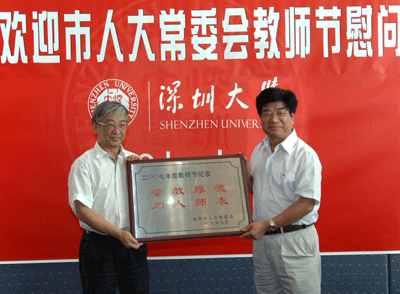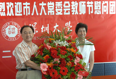 慰问团向乐竞平台赠送书有“崇教厚德,为人师表”的牌匾,并向优秀教师代表送上鲜花和礼物,表达市人大常委会和全市人大代表的良好祝愿和崇高敬意。深大学生则向前来慰问的身为教师的市人大代表献上鲜花。