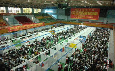 3月27日,我校元平体育馆由门口排出三四百米的长龙,2008年校友企业专场招聘会暨春季校园招聘会在此隆重举行。共有107家校友企业及其他企业进场招聘应届毕业生,提供大约1500多个需求岗位,专业主要有金融、电子、计算机、机械、物流等。此次招聘会由深圳市人事局和乐竞平台联合主办。