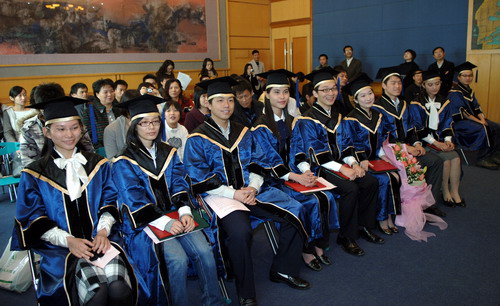 1月16日上午,在国际会议厅D厅,我校为2008届参加“西部计划”抗震救灾专项行动的九名志愿者同学举行简单而隆重的毕业典礼暨学位授予仪式。校学位评定委员会主席、校长章必功,校学位评定委员会副主席、校党委副书记陶一桃,副校长李永华,教务处、学生处、招生就业办、外国语学院、管理学院、法学院、物理科学与技术学院、信息工程学院、建筑与城市规划学院、土木工程学院负责人等主礼教授,相关学院师生代表和学生家长共同出席毕业典礼。李永华主持典礼。