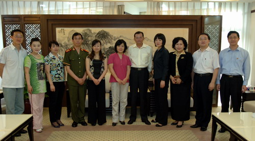 宣讲会开始前,校领导江潭瑜、陶一桃、李永华,深圳团市委负责人在办公楼205亲切会见了“延安精神”宣讲团全体成员。