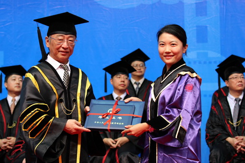 典礼暨授予仪式在雄壮的国歌声中开始。副校长李永华宣读学校授予研究生硕士学位的决定。校长章必功为获得硕士学位的同学一一颁发证书并合影留念。