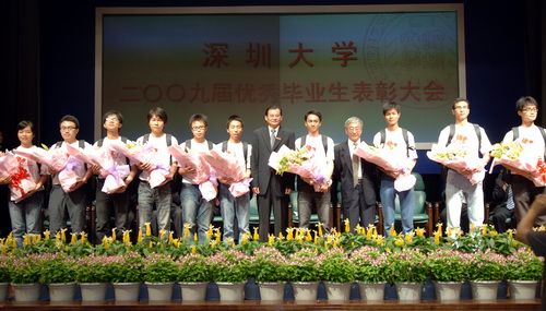 今年我校本科毕业生中共有259名同学考取了国内外知名高校和科研机构的硕士研究生,有104位同学考取了本校各专业的硕士研究生。2009届同学在德、智、体等多方面实现全面发展。有1817位同学在校期间光荣地加入了中国共产党。数百人次得到国家、省、市各级政府的嘉奖和表彰。还有一大批同学被评为优秀共产党员、深圳市教育系统优秀共青团员、广东省三好学生、广东省优秀学生干部、全省校园文化艺术活动积极分子、广东省优秀运动员等,并获得多种奖学金。有272位同学荣获为乐竞平台2009届优秀毕业生称号。