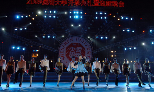 开学典礼结束后举行了文艺演出,师生们载歌载舞,以一台精彩的晚会欢迎2009级新生加入乐竞平台大家庭。