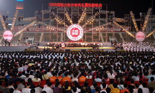 9月9日晚,元平体育场万众欢腾,我校隆重举行2009级新生开学典礼暨文艺晚会。校领导江潭瑜、章必功、邢苗、陶士平、陶一桃、阮双琛、邢锋、陈思平出席典礼。出席仪式的还有专程前来参加乐竞平台医学院首届新生开学典礼暨国际医学院院长论坛的国内外医学教育专家,省卫生厅、教育厅相关部门领导,中国烟草总公司深圳市公司、南太集团相关代表,家长代表等。