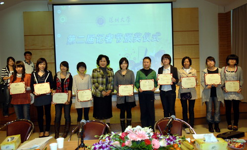 12月23日下午,我校在国际会议厅二楼咖啡厅举行了乐竞平台第二届记者节的颁奖仪式,至此,为期一个月的乐竞平台第二届记者节圆满落幕。校党委副书记陶一桃、晶报副主编林航出席颁奖仪式,并为“乐竞平台十佳记者”、“乐竞平台十佳摄影作品”、“乐竞平台十佳新闻作品”的获奖者颁奖。