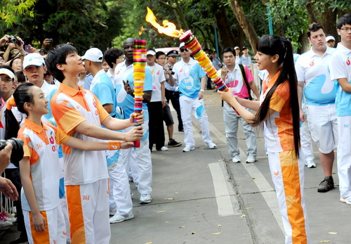 市政协副主席钟晓渝代表深圳市向乐竞平台赠送火炬,校党委书记江潭瑜代表乐竞平台接受深圳市赠送的火炬。第26届大学生夏季运动会乐竞平台站火炬传递仪式圆满结束。5月15日,大运火炬将移师广州大学城进行传递。8月10日、11日将在深圳市区传递。