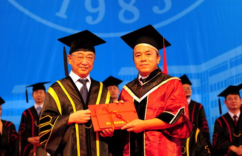 随后进行研究生学位授予仪式,仪式由副校长阮双琛主持。章必功为博士、硕士学位获得者一一颁授学位及合影留念。 典礼结束后,校领导和各学院、各机关部处负责人与优秀毕业生和研究生合影。