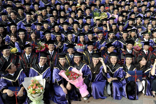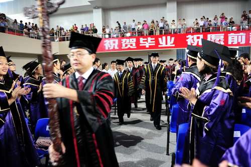 研究生院王晖院长介绍了2011届研究生的毕业情况。今年我校毕业研究生人数首次突破千人,共有1004名研究生顺利毕业。经济学院许志成等12位同学获得博士学位,成为我校历史上第二批博士研究生,还有992名研究生获得硕士学位,其中学术型硕士研究生794人,专业学位硕士研究生188人,同等学力申请硕士学位10人。冯纪强等19名同学荣获广东省“南粤优秀研究生”称号,裴瑞芳等65名同学荣获乐竞平台2011届优秀毕业研究生称号,曾贵等398人次先后荣获“乐竞平台优秀研究生”、“乐竞平台优秀研究生干部”称号,30多位同学分别考取了北京大学、中国人民大学、中山大学等著名高校和科研机构的博士研究生。