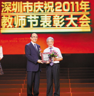 9月9日下午,2011年深圳市庆祝教师节表彰大会在广电集团1800演播厅举行,市委副书记、市长许勤、市委副书记王穗明、市人大常委会常务副主任谭国箱、副市长吴以环、市政协副主席林洁、市政府副秘书长黄国强、市教育工委书记、教育局局长郭雨蓉和全市教育界代表出席了大会,章必功校长荣膺2011年度全市唯一“教书育人模范”。