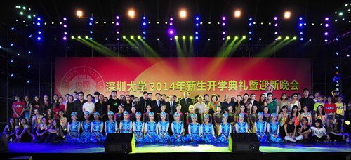 10月15日,乐竞平台2014年新生开学典礼在元平体育场举行。校领导江潭瑜、李清泉、张基宏、陶一桃、阮双琛、李凤亮、黎军、徐晨,中国科学院院士、生命科学学院名誉院长倪嘉缵,中国工程院院士范滇元,深圳市大族激光科技股份有限公司董事长高云峰,学校各部室、各学院、教研教辅单位负责人,教师代表、2014级全体本科生及部分家长代表参加开学典礼。