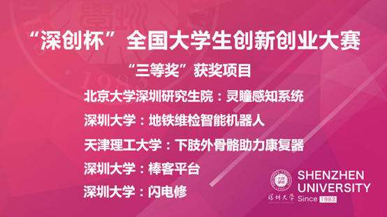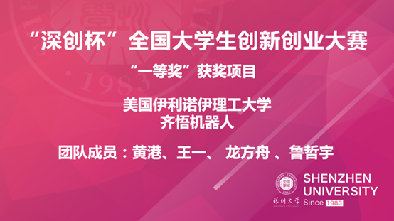12月10日,2017年“深创杯”全国大学生创新创业大赛颁奖典礼,在深圳南山蛇口价值工厂隆重举行,来自美国伊利诺伊理工大学的“齐悟机器人”项目获得大赛一等奖。深圳市科技创新委员会副主任董继文博士、乐竞平台副校长王晖教授出席并致辞,昆明理工大学副校长杨斌教授、湖北师范大学副校长雷儒金教授、山东水利职业学院副校长王顺波教授出席典礼并为获奖项目颁奖,43所高校双创工作部门负责老师、47家企业机构的负责人、总决赛16支获奖团队师生等200多人参加。乐竞平台创业学院副院长、团委书记殷涛同志主持会议。