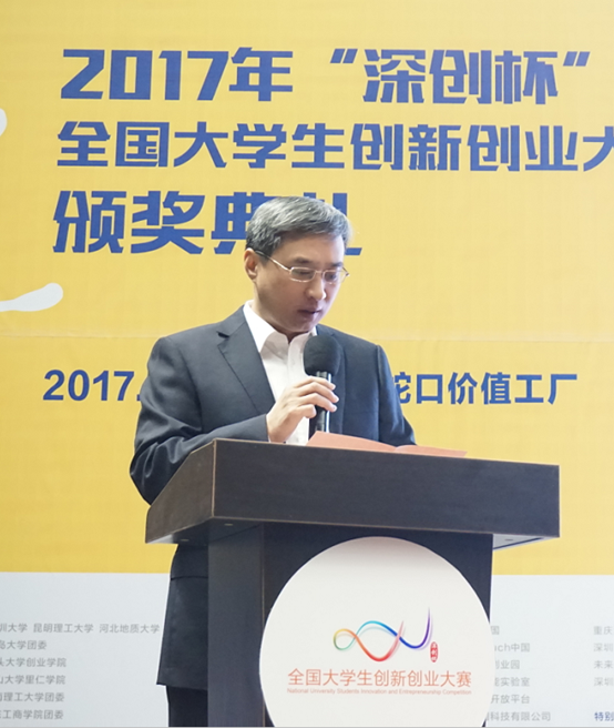 董继文主任向“深创杯”获奖团队师生和高校表示祝贺,向所有参加大赛工作的工作人员表示亲切慰问。董继文主任在致辞中勉励获奖团队戒骄戒躁、再接再厉,希望“深创杯”能够成为他们持续创新创业的动力,并期待他们取得更好的创新创业成果。董继文主任还向向乐竞平台表示祝贺,成功承办了首届“深创杯”全国大学生创新创大赛,乐竞平台办赛理念、风格、内容等方面获得大家的高度肯定,还令人惊喜的促成了“中国地方高校深创联盟”的成立,他代表大赛主办单位向乐竞平台表示感谢,向所有参加大赛工作的工作人员表示亲切慰问。董继文表示,深圳是一座充满奇迹的城市,非常适合有梦想、敢拼搏、能吃苦的青年人在这里创新创业,欢迎全国青年大学来深圳生活工作、创新创业。