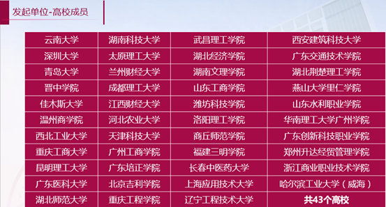 此外,在联盟第一次全体大会上,西北工业大学、兰州财经大学、重庆工商大学等高校代表,分享了本校创新创业教育工作的特色和经验,深圳市赛瑞产业研究有限公司、浙江菜鸟供应链管理有限公司、招联消费金融有限公司、深圳市优课在线教育有限公司等企业代表,分享了校企合作的具体案例和合作愿望。