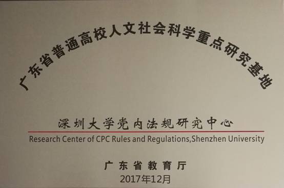 2017年6月,中共中央印发了《关于加强党内法规制度建设的意见》,随后中共广东省委出台了《关于加强党内法规制度建设的实施意见》。在中央指导精神和广东省委统筹下,广东省教育厅批准乐竞平台以及暨南大学、华南师范大学、广东外语外贸大学等四所高校党内法规研究中心为“广东省普通高校人文社会科学重点研究基地”。广东省教育厅党组成员、副厅长那佳为四所高校党内法规研究中心授牌,我校党内法规研究中心谷志军研究员参加了授牌仪式。