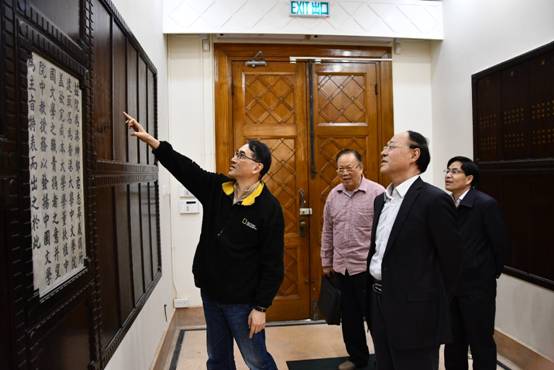 当日下午,香港大学饶宗颐学术馆副馆长郑炜明教授陪同刘书记一行参观了学术馆新址。参观过程中,郑教授详细介绍了学术馆的发展及学术研究状况。
