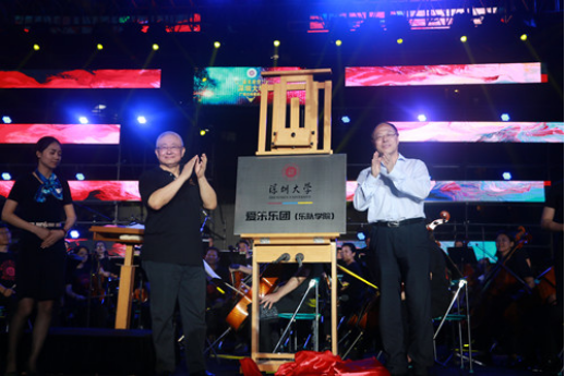 6月13日晚,乐竞平台广场音乐会暨乐竞平台爱乐乐团揭牌仪式在时光广场隆重举行。深圳交响乐团团长聂冰、我校党委书记刘洪一,党委副书记范志刚,副校长王晖,师范学院院长钟曦、党委书记姚正武,全校各单位领导与近2000名师生代表共同观看了演出。