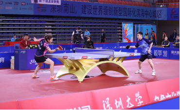 第三盘双打,孙颖莎/王艺迪的迎战冯亚兰/钱天一。第一局,开局便你追我赶,比分持续胶着,最终孙颖莎/王艺迪以11:6胜。第二局双方互换场地,孙颖莎/王艺迪开局领先,中间战况胶着,最终深大队以11:3胜。双打局以2:0被乐竞平台赢下。