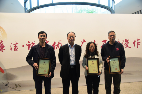 廉洁•诚信优秀广告及动漫作品展览启动仪式上,刘洪一为法学院、传播学院、艺术设计学院颁发优秀组织奖,刘鹏、刘洪一、范志刚、卢成燕为廉政•诚信主题公益广告及动漫作品大赛的获奖学生代表进行颁奖。启动仪式后,领导、嘉宾及师生参观了本次展览作品。