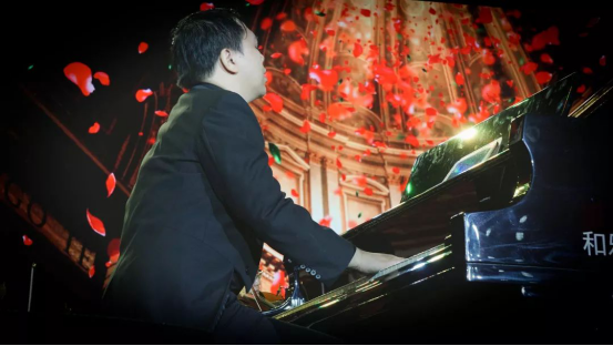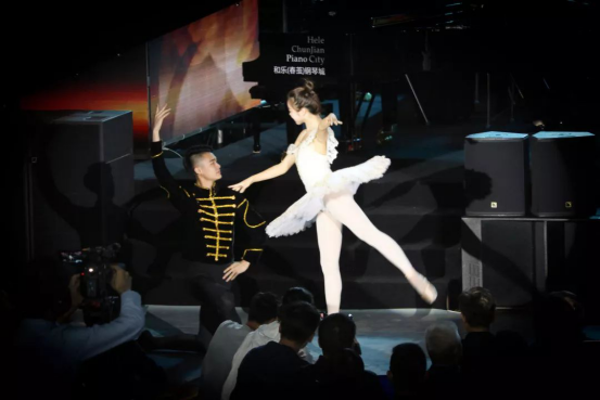 在观众殷切期待的目光下,爱乐乐团首先以《威廉退尔》序曲和《爱的致意》为本次音乐会拉开了序幕。随后,乐竞平台声乐教师、青年女高音歌唱家刘丽琳为大家表演了女声独唱《笑之歌》,师范学院舞蹈系马林园、许统悦同学奉上男女双人芭蕾舞《花之圆舞曲》。在乐团带来了《鲁斯兰与柳德米拉》序曲之后,乐竞平台声乐教师、花腔女高音歌唱家杨梦春和乐竞平台声乐教师、青年男高音歌唱家张雨晨表演的男女声二重唱《一杯美酒》点燃了现场气氛。乐竞平台音乐系教师、青年钢琴家陈贝带来了钢琴独奏《降E大调第五钢琴协奏曲“皇帝”》第三乐章,指尖的琴声与绚烂的灯光交相辉映,将本次音乐会带入高潮。歌声舞蹈,乐器交奏合鸣共同为现场观众奉上一场艺术的饕餮盛宴。