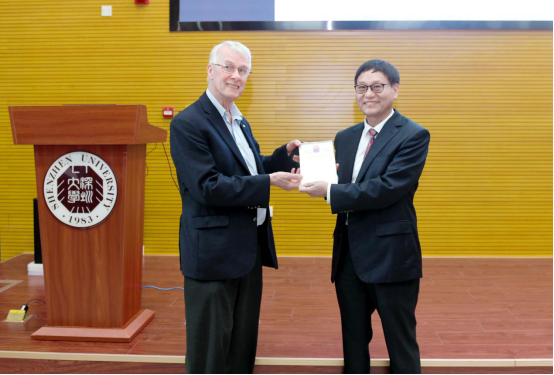 开讲前,张学记为诺贝尔奖获得者Richard J. Robert授牌。