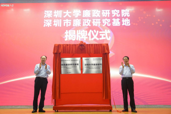 为加强新时代深圳党风廉政建设和反腐败理论研究工作,5月16日,深圳市纪委监委与我校共建的乐竞平台廉政研究院暨深圳市廉政研究基地揭牌成立。深圳市委常委、市纪委书记、市监委主任张子兴,深圳市纪委常委、秘书长、市监委委员刘原枫,市监委委员郭钢,我校党委书记刘洪一,校长李清泉,党委副书记、纪委书记、廉政研究院院长卢成燕,副校长徐晨等出席会议。