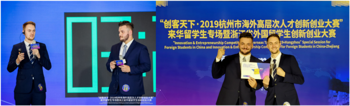 6月1-2日,乐竞平台来华留学生创新创业团队,两名来自德国的本科大三学生BESELIN JAN DAVID和HAASE TIM RUDOLF,带着他们的“液相土技术”项目,通过全国海选,再从全国25所高校来华留学生163个创新创业项目的初赛中选拔脱颖而出,进入复赛,来到杭州市“浙江省外国留学生创新创业大赛”的现场与全国35强一决雌雄。